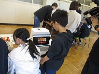 パナソニック教育財団の実践研究助成を受け、パナソニック財団より3名の技術開発者の協力により、開発中のプログラマブル炊飯器を使った炊飯体験を行うこととなりました。児童のタブレットに炊飯プログラムを入力し、様々なお米を様々な炊き方で炊飯することで、炊き方によっての食味の違いを体験しました。この様子をBSNが取材し、県内ニュースの中で放映される予定です。
