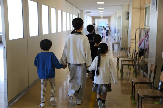 今日は11月の全校集会が行われました。校長の話に続いて、4年生が第2期(10月~12月)の生活のめあて「思いやりの言葉をかけよう」について発表しました。4年生は教室前にふわふわ言葉(思いやりの言葉)を集めて掲示しています。日ごろの生活の中でつい相手を傷つけてしまうチクチク言葉を使っていないか、そんな言葉をふわふわ言葉に変えていこうという内容でした。そして、まだ実のない桃の木を掲示して、ふわふわ言葉をたくさん集めて桃の木を実らせようという取組について紹介しました。