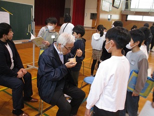 総合的な学習の時間に取り組んできた「桃山特製!味噌汁」。「桃山の特製みそ汁を開発しよう!」「桃山の地域を盛り上げよう!」という子どもたちの思いや願いが膨らみ、何か月も試行錯誤しながらそれぞれ3クラスの味噌汁が決まりました。地域の店舗「マーブル」さんの協力のもとで、子どもたちの構想が現実となり、「桃山特製味噌汁」が出来上がりました。そして、本日、30名以上の地域の皆様、保護者の皆様をお招きし、試食会を行う運びとなりました。地域や保護者の皆様から、食べた感想や評価をいただきました。皆様から「大変美味しい」「工夫がよく出ている」「これまでとてもよい学習を行ってきたことがこのみそ汁に表れている」などと大好評でした。「もっとこうしたらよい」という改善点もいただきましたので、今後もさらに進化していくことと思います。これからも楽しみです。