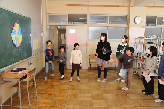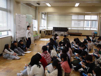 英語の紙芝居を制作・上演している「アトリエさかい」の代表である坂井邦晃先生が来校し、1年生が英語の紙芝居を体験しました。ハロウィンの季節となりました。坂井先生は、ハロウィンを題材としたとても楽しい雰囲気のスライドを使いながら、とても表現豊かに英語で子どもたちに伝え、子どもたちも「おばけの数」などを「ワン・ツースリー……」と英語で元気に答えていました。とても楽しい雰囲気の中で子どもたちが英語に親しみ、情操も育っていく様子が伝わってきました。ありがとうございました。