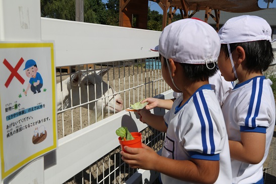 秋晴れのもと、1年生がいくとぴあへ校外学習へ行ってきました。午前中は食育・花育センターと子ども創造センターで体験ラリークイズをしたり自由見学をしたりしました。そしておいしいお弁当を食べ、午後は動物ふれあいセンターで、アルパカやヤギ、ヒツジへのえさやりを体験しました。始め緊張していた子どもたちですが、飼育係の方からのアドバイスを聞き、勇気を出して餌を差し出すと動物たちもそれに応えて喜んで食べてくれました。「僕の手をなめたよ」「かわいかったよ」と大はしゃぎ。思い出に残る校外学習となりました。
