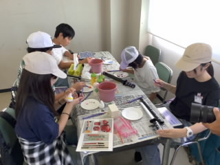 9月25日に1年生が、いくとぴあ食花に校外学習へ出掛けました。蛍光絵具を使い、仲間と協力して、宇宙の絵を描きました。ブラックライトを作品に当てて、光る様子を見て、子どもたちは歓声を上げていました。