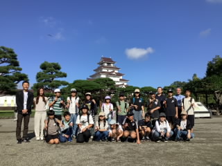晴天のもと、修学旅行2日目が始まりました。宿泊施設を出発して、鶴ヶ城会館を目指しました。6年生と引率職員で、鶴ヶ城を背景に、集合写真を撮りました。石垣を見て、その大きさに驚いたり、天守閣から市内を …