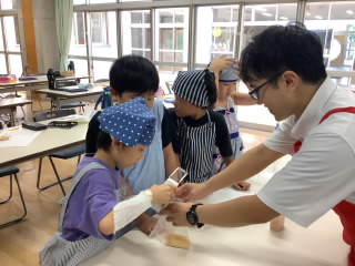 9月4日に(公財)東北活性化研究センターの協力により、(株)岩塚製菓様から出前授業をしていただきました。米菓の作り方や工夫、工場で仕事をする方々の努力や願いなどをお話ししてもらいました。子どもたちは、実際におせんべいを作らせてもらいました。最後まで楽しく多くのことを学んでいました。
