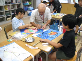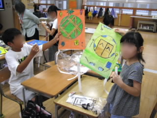 9月25日に3年生が総合的な学習で、凧作りをしました。凧揚げで、両川商店街を盛り上げようと、子どもたちが考えました。ボランティアの方にお手伝いしていただき、お店を表した和凧を作りました。ボランティアの皆様、ご協力ありがとうございました。