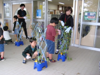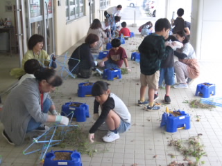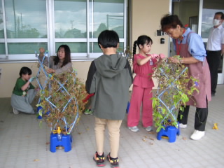 10月1日に、1年生が生活科の学習で育てたアサガオのつるを取り外しました。アサガオのつるを材料にして、リースを作ります。ボランティアの皆様から、取り外しや丸める作業をお手伝いいただきました。今後は、学校で育てているサツマイモのつるも利用すして、リースをボリュームアップさせる予定です。ボランティアの皆様、ご協力ありがとうございました。