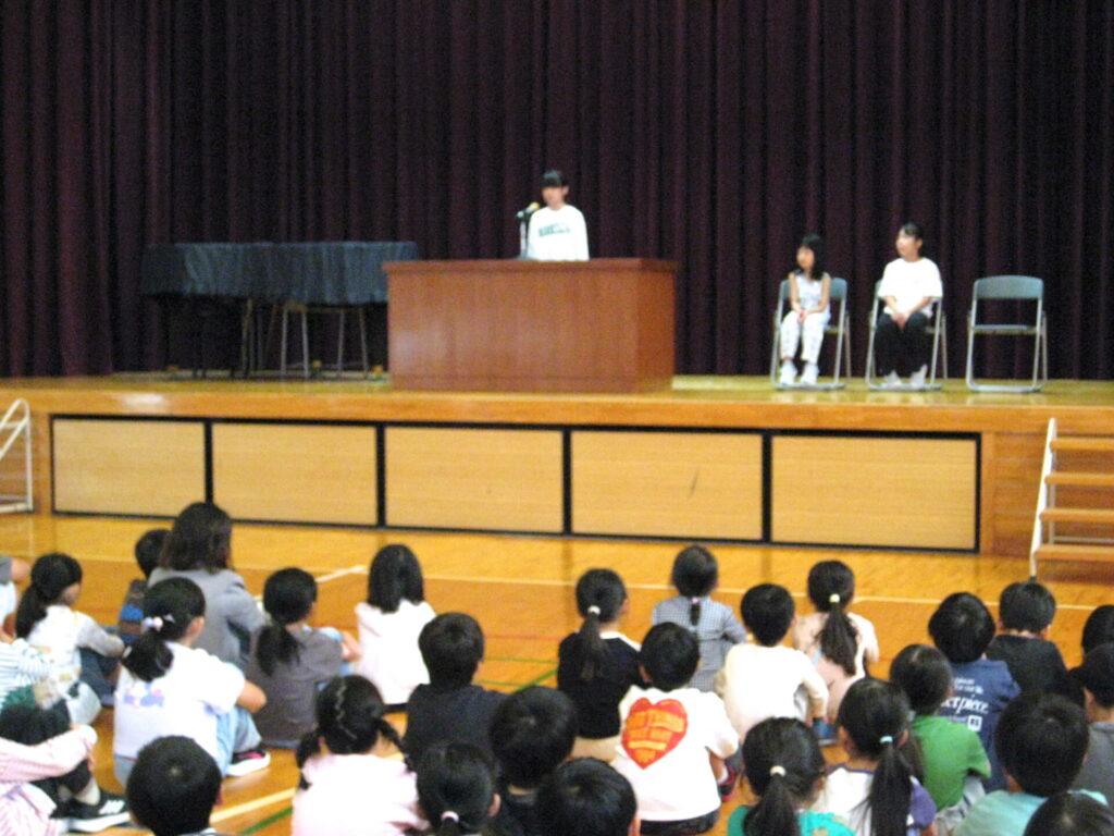 10日(金)に、105日間(1年生は104日間)の学習を終え、前期終業式が行われました。終業式では、1・3・5年の代表児童が「前期を振り返って」の発表をしました。3人とも落ち着いて立派に発表することができました。その後、校長が、学習のこと、相手の気持ちを考えて行動すること、あいさつのことを視点に、子どもたちの成長について話しました。また、各学級では、担任から子どもたちへ通知表が手渡され、前期の活動をじっくりと振り返っていました。