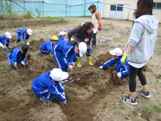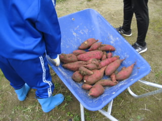 10月21日に、1年生が生活科の学習で、お世話をして育てたサツマイモを掘りました。今年も豊作で、大きなサツマイモがたくさんとれました。ボランティアの皆様から、つるを取ってもらったり、土を掘り起こしてもらったりしました。ご協力ありがとうございました。