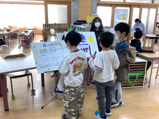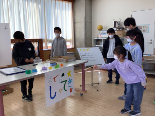 11日に児童会祭り「にじいろランド」が行われました。3〜6年生が,それぞれの学年で学習したことを活かして,楽しいお店を出しました。3年生は,理科でのゴムの力の学習を活かした遊び。4年生は総合的な学習の時間を活かした梨のクイズ。5年生は,総合的な学習の時間を活かした米の重さゲームや体育を活かした卓球ゲーム。6年生は,歴史の学習を活かした迷路遊び。体育の学習を活かした鬼ごっこや,ボールをよけるゲームのお店を出しました。お客さんとなって回った子どもたちは、みんなとても楽しそうに参加していました。