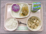 今日の給食のメニューは、ごはん、マーボー豆腐、もやしのごまドレッシングあえ、ぶどうゼリー、牛乳でした。 年中・年長組では全部の食缶が空っぽになりました …