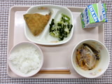 今日の給食のメニューは、ごはん、はるさめスープ、あじフライ、わかめの酢の物、牛乳でした。 今日の献立は、柴田ケイコさんの「うみのごちそうしろくま」という本をもとにしているそうです。~うみ …