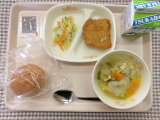 今日の給食のメニューは、横割り丸パン、マカロニスープ、白身魚フライ(中濃ソース)、コールスロー、牛乳でした。 パンに白身魚フライをはさんで「フィッシュバーガーみたいだね!」と言って食べて …