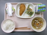 今日の給食のメニューは、ごはん、大海、鮭チーズフライ、アーモンドあえ、ルレクチェゼリー、牛乳でした。 今週は『給食週間』だそうです。今年度のテーマは、「祝!村上市村上祭の屋台行事 ユネス …