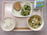 今日の給食のメニューは、ごはん、卵と冬野菜のとろみスープ、もち麦入りハンバーグのトマトソースかけ、プチヴェールのツナサラダ、牛乳でした。 今日は、秋葉区役所、JA、農家のみなさんが協力し美 …