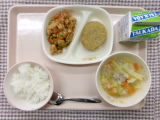今日の給食のメニューは、ごはん、野菜のスープ煮、さつまいもコロッケ、自分で作ろう!ケチャップライスの具、牛乳でした。 さつまいもコロッケは、お口に入れるとさつまいもの甘みがふわっと広がり …