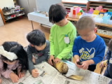 お友達がお家から竹の子を持って来てくれました。採りたての皮つきの竹の子に子どもたちは興味津々でした。「どんな味かな?」「食べてみようよ!」・・・年長組が竹の子の皮をむきます。その姿をお手本にして、年 …