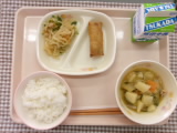 今日は豚肉の入ったポークカレーがでました。さつまいもやじゃがいも、グリンピースなど野菜も沢山入っていましたが、カレーには苦手な野菜も食べられるようになる不思議なパワーがあるようで、おかわりをしている子も多くいました。デザートのフルーツカクテルにも子どもたちは大喜びの様子でした♪