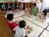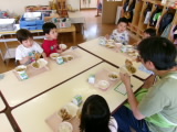 今日のいわしのかば焼きは大きく、子どもたちも食べるのが少し大変そうでしたがお皿をもちながら上手に食べている姿をみることができました。これから夏の暑さに負けない体を作るためにも、沢山の食に触れながら楽しい給食の時間にしていきたいと思います!