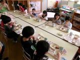 「やったー!今日はパンだよ」「これ(いちごジャム)をつけて食べるのかなぁ?」と給食では珍しい食パンの登場に、子どもたちも嬉しそうな様子がみられました。みんなパンが大好きなようで、年少組さんもあっという間に完食していました♪
