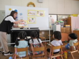 今日は年少組で「暑いときの過ごし方」について保健指導を行いました。外に出るとき、「頭をお日様から守るためにはどうしたらいいかなぁ?」と問いかけると「ぼうし」「日傘」など、これまでの自分の生活を振り返りながら答える様子もみられました。