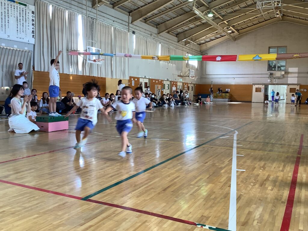 未就園児、保護者、小学生など、運動会に来てくれた方々も競技に参加しました。小さい子がかわいく走る(歩く?)様子や、お家の方のパフォーマンス、小学生の全力リレーなど、それぞれ歓声があがりました。