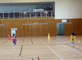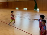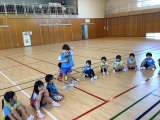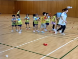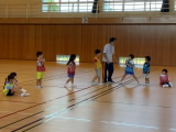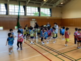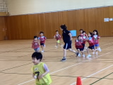 次は追いかけ玉入れです。先生の担いだかごを子どもたちが追いかけます。広い広い体育館を、「まてー!」と声を上げながら子どもたちは元気に走り回っていました。(かご役の先生の方がふらふらになってしまいました)