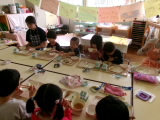 今日はお天気にも恵まれ、全学年でサツマイモ掘りを行いました。尻もちをつきながらも、お友だちとも力を合わせながら「うんとこしょ!どっこいしょ!」と元気なかけ声で、サツマイモを抜いていました。給食の時間に芋ほりについて聞いてみると、口々に「楽しかった~!!」と言って、手を広げながら「こんなに大きいのもあったよ~」と嬉しそうに教えてくれました。大きいものや長いもの、様々な形・大きさのサツマイモが収穫できたようです。お家でも、ぜひお子さんに聞いてみてくださいね。