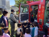 消防士の方からほめていただいたり、消防車を見学したりし、みんな目をキラキラさせていました。