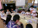 年長組の数名は、今日の午後就学時健診に出かけて行きました。給食の時間に聞いてみると、ちょっとドキドキしている子、楽しみな子・・様々でしたが、どの子も元気に「いってきます!」と小学校に向かいました♪