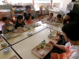 今日の給食のメニューは、ごはん、みそワンタンスープ、豚肉と春雨の中華炒め、即席漬け、牛乳でした。
