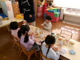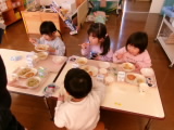今日はフリー参観がありました。子どもたちが自分で机や椅子を準備し、食器を運んだり配膳したりする普段の様子をお家の方に見ていただきました。ちょっぴり緊張気味の子どもたちでしたが、完食している姿も多くみることができました♪