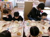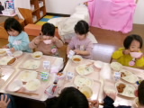 豚肉や鶏肉のたれカツはよく出てきますが、今日のたれカツはぶりでした!ぶりは冬を代表する魚です。特に、冬の時期の寒ぶりは脂がのっていてさらに美味しくなります。「たれカツ」にも使われる甘じょっぱいタレがかかっていたので、ごはんとの相性も抜群でした!魚が苦手な子も食べやすかったようです。
