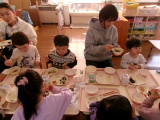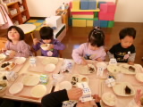 塩こうじチキンカツは、塩こうじの効果もあってか柔らかく食べやすかったです!また、ひじきには骨や歯を丈夫にしたり、イライラをおさえたりするカルシウムがたくさん含まれています。ほかにも、体をめぐる血液のもとになる鉄も多く含んでいます。鉄は体温を保ったり、貧血を予防したりします。「ぼく、ひじき大好きなんだ~!」と年少組の子も喜んで食べている姿がみられました。