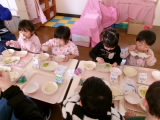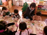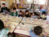 アーモンドそぼろごはんの具は、年少組では初めて食べた子もいたようですが美味しかったようでモリモリ食べている姿をみることができました。また、さつまいものクリームスープも大人気でした!さつまいもにはビタミンCが多く含まれていて、このビタミンCは熱に強く壊れにくいので沢山とることができます。「おかわりしたよ!」と言っている子が何人もいました。