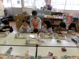 今日は、秋葉区さといも給食の日でした。美味しい秋葉区の里芋をみなさんに食べてもらいたいと、秋葉区役所やJA、農家の方々が協力し、秋葉区でとれた「さとのいもこ」という里芋で、「里のいもこと大豆の青のりがらめ」をつくってくださったそうです。厚焼き卵に描かれた絵は、"さとのいもこ”のPRキャラクター「さとのいもこちゃん」です。