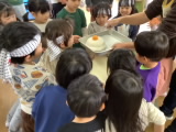 お昼はお楽しみの会食です。味付けもちやお家の方が作ってくれた大根汁(※大根は幼稚園で掘った大根です!)をみんなでおいしく楽しく食べました。
