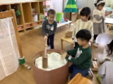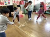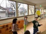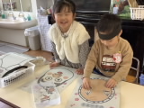 始業式では3学期の楽しい予定を教えてもらいました。雪遊びや豆まき、ひな祭り・・・楽しいことがいっぱいでワクワクしてきました。また、「冬休みの楽しかったこと」「3学期の楽しみなこと」など、友達の話に耳を傾けていました。保育室に戻るとたくさんの子どもが、「僕はね・・・!」「私だって・・・!」と、たくさんお話してくれました。
