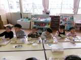 給食が届くと「いい匂いがする~!」「今日はもしかしてカレーなんじゃない?」と久しぶりの給食をとっても楽しみにしている様子でした。麺の袋を上手に開けて、カレー南蛮の汁と麺を絡ませながら美味しくすすっている様子がみられました。