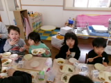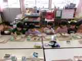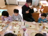 今日は「午年献立」ということで、レバーや『うまみ』スープなど午年にちなんだメニューが登場しました。レバーには鉄分が多く含まれています。体の中に鉄分が十分に足りていると、学習能力や記憶力、考える力や運動能力の向上に効果が期待できるそうです。成長期は鉄分がたくさん必要になるので、積極的にとれるといいですね。レバー入りメンチカツはカレー味で子どもたちも食べやすかったようです。
