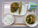 今日は結小学校のみなさんが考えた献立だそうです。寒い冬、「体の調子を整えられる」野菜をたくさんとれるように、副菜は中華サラダ、汁物は沢煮わんでした。主菜の鶏のから揚げで筋力もアップ!体も温まります。みんなが残さずに食べられる、おかわりしたくなるようなメニューにしてくださったそうです。幼稚園の子どもたちも、モリモリ元気いっぱい食べる姿がみられました。