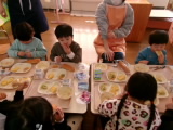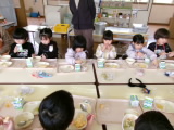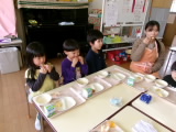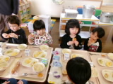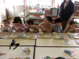 今日は、コッペパンがでました。パンをちぎってからジャムをつけて食べたり、真ん中を割ってそこにジャムをつけて食べたりと、各々の食べ方で味わっていました!