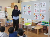 今日は年中・年長組で「野菜パワーとモグモグパワーで元気いっぱいになろう」をテーマに保健指導を行いました。色々な種類の野菜を食べると、野菜のもつ4つのパワー(①つやつやパワー②きらきらパワー③すっきりパワー④バリアパワー)が手に入り、体が元気いっぱいになることを伝えました。