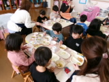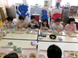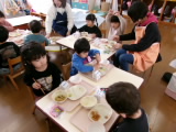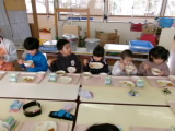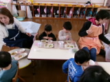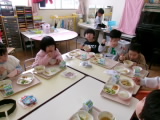 今日から、1月に入園した満3歳児3名の給食も始まりました。初めての給食でしたが、上手にスプーン・フォークを使って食べている様子がみられました。大きなお口でモグモグよく噛んで食べていましたよ♪