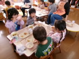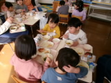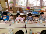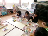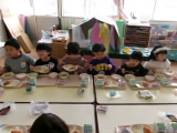 今日は新関小学校の5・6年生が授業の中で考えた献立だそうです。普段食べることがあまりない旨辛ヤンニョムチキンと、それに合わせた春雨中華サラダでした。デザートは子どもたちに大人気のガトーショコラです。五大栄養素が入っているのでとてもバランスがよく栄養満点です。ヤンニョムチキンとは、韓国発祥の甘辛い鶏肉のから揚げのことです。「初めて食べたけど美味しい!」と新しい味との出会いを楽しんでいました。