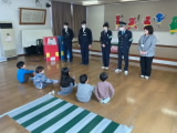 今日は年長組の「入学前交通安全教室」がありました。大切な合言葉「いかのおすし」を教わったり、道路を渡るときの「右見て、左見て、もう一度右見て」の確認を実践しました。ピシッと手を挙げて横断歩道を渡る姿は、もうすぐ小学生になるという頼もしさを感じました!