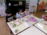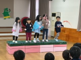今日は午前中に年中組の子たちがコンサートに招待してくれました♪「10時から遊戯室でコンサートをやるので来てください!」と招待状を持って職員室にやってきました。遊戯室に行ってみると・・