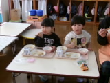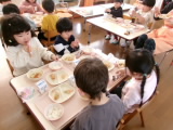 今日の給食のメニューは、ごはん、豆腐の中華煮、揚げぎょうざ、大根漬け、牛乳でした。