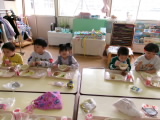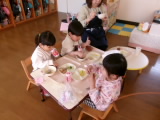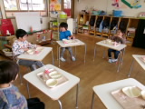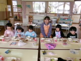 パンや飲むヨーグルトなど普段あまり出ないメニューの日は、子どもたちも給食の前からワクワクしている様子が伺えます♪年少組の子どもたちのなかには、ココアロールパンを初めて食べる子もいたようで「美味しい!」と喜んで食べていました。
