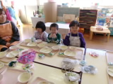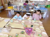 今日は、年少組の生活発表会のリハーサルがありました。年中年長組の子どもたちがお客さんとして来て、最初はちょっぴりドキドキしている子どもたちでしたが、そこは元気いっぱいの年少さん。劇遊びが始まると、自分の役になりきってのびのびと表現を楽しんだり、歌や踊りに合わせて元気いっぱい体を動かしていました!お兄さんお姉さんたちからも、「〇〇のところがおもしろかった!」「〇〇しているところがかわいかったよ」とたくさん褒めてもらって、みんなとっても嬉しそうでした。