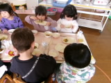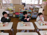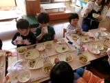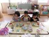 デザートには「いちご」がでました。真っ赤に実ったいちごを食べて「あまーい!」と大喜びの子どもたちでした。美味しい旬のデザートを楽しむことができました♪